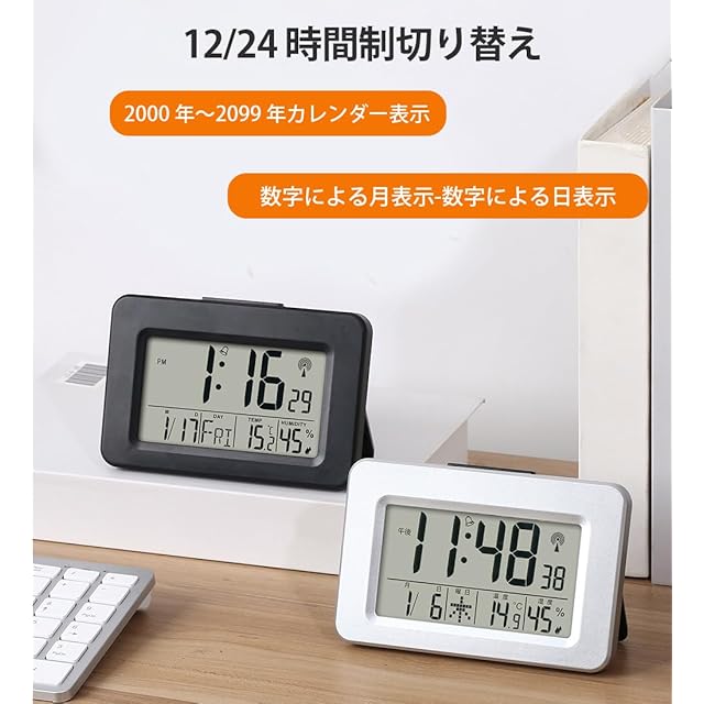 置き時計 目覚まし時計 電波時計 温度湿度計