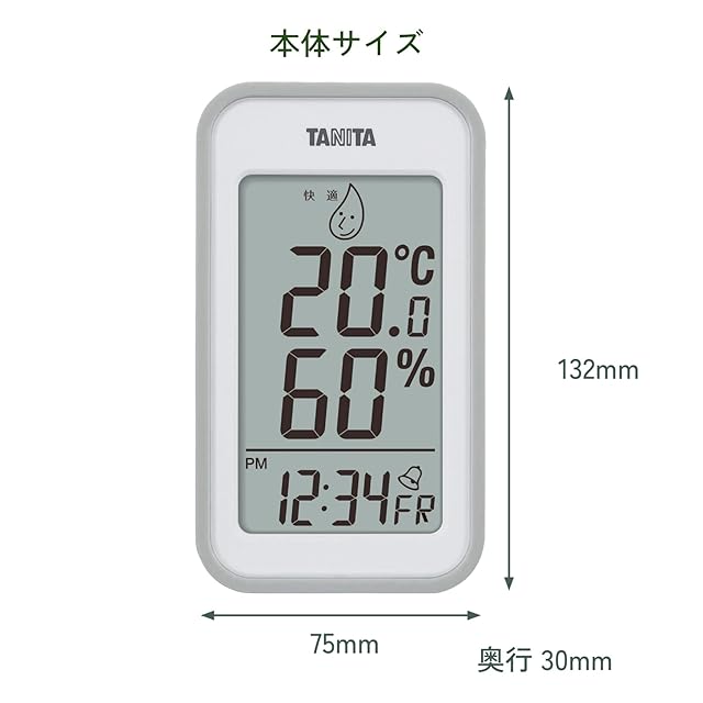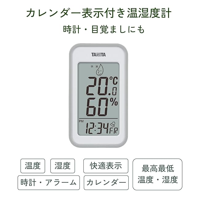タニタ Tanita 温湿度計 大画面 一目で室内環境がわかる 時計 カレンダー 温度 湿度 デジタル 壁掛け 卓上 グレー マグネット TT-559 GY