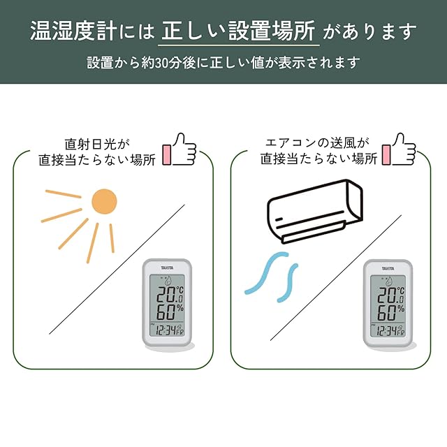 測定範囲:温度-5度~50度、湿度20~95%(表示:温度0.1度単位・湿度1%単位)