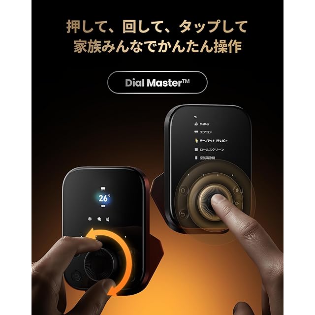 【昔ながらのダイヤル操作でスマートホームを誰でも簡単に】独自設計の「Dial Master」搭載。ダイヤルを軽く回すだけでエアコンの温度を1℃調節したり、照明の明るさを10%ずつ変えたり、リモコン同様の細かな操作性が叶います。また、4つのカスタムボタンには「外出」「帰宅」「シアター」など、自分で作成した好きなシーンを登録して、ワンタッチでデバイスをまとめて操作。最新技術と馴染み深い操作性で、機械操作が苦手な方や高齢の方でも使いやすいです。