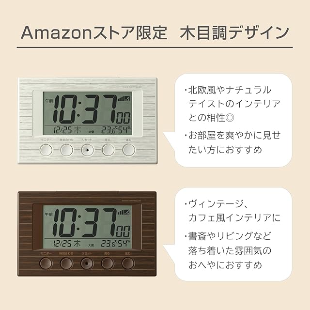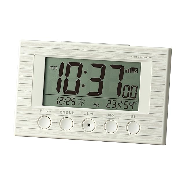 【時刻が見やすく、操作簡単】コンパクトながら、数字サイズ2.6cmと遠くからでも時刻が見やすい時計です。操作しやすいよう主要なボタン5つを前面に配置。毎日使うものだからこそ操作の分かりやすさにもこだわりました。
