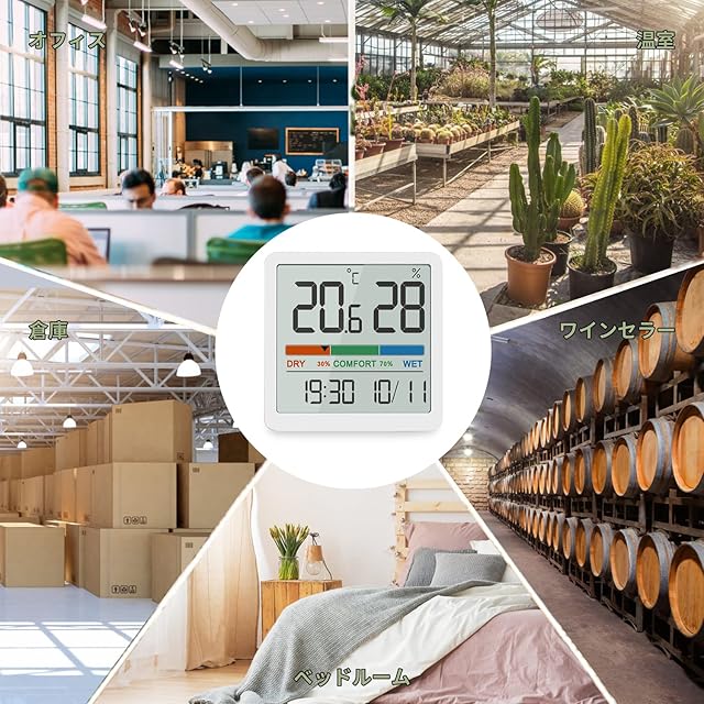 【家庭快適管理】温度計と湿度計の組み合わせで、室内の空調管理が簡単にでき、赤ちゃんやペット(犬、猫、ウサギ、爬虫類など)がいる家庭におすすめです。空気の湿り具合や乾燥具合を把握して加湿器のオン/オフを適時に切り替えられるなど、温度や湿度に関連する状況で役立ちます。