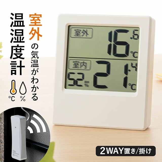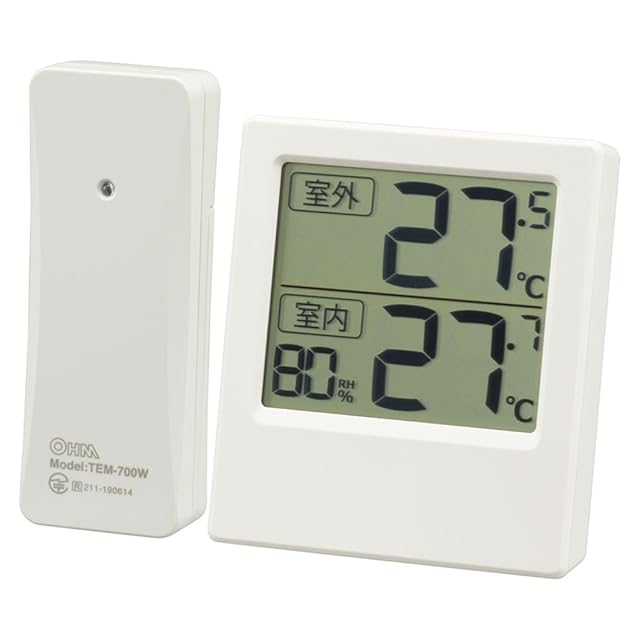 商品名:オーム電機 温湿度計 温度計 湿度計 屋外の温度が計れる 大文字表示 卓上スタンド 壁掛け 屋外屋内両用 室外の気温が分かる温湿度計 TEM-701-W 08-1451 OHM