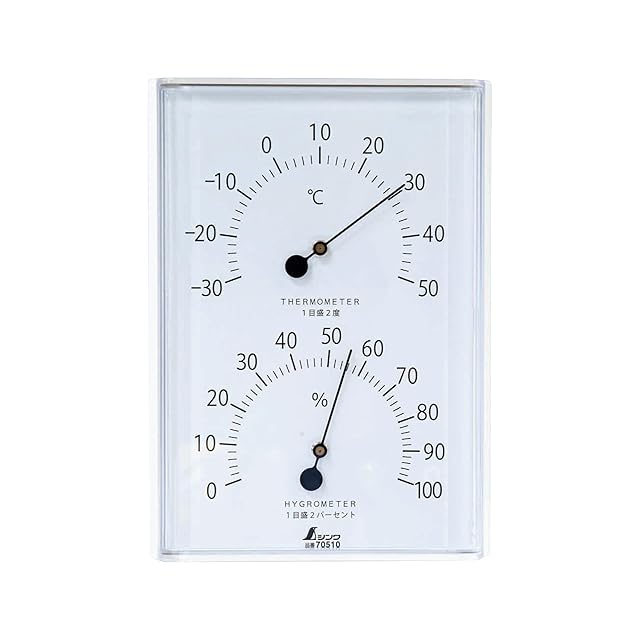 裏面フック穴付き薄型、壁掛けタイプの温湿度計です。