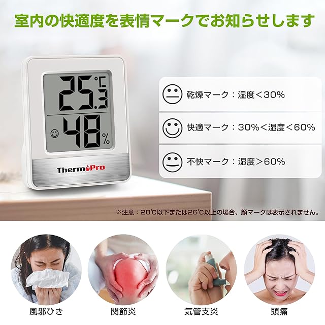 商品名:ThermoPro 温度湿度計 温度計 デジタル 温湿度計 室内 熱中症対策 室温計 見やすいデカ文字 顔マーク 大画面 高精度 シンプル コンパクト スタンド マグネット付き 置き掛け兼用 赤ちゃん お年寄り 寝室 温室 爬虫類 TP49 ホワイト 3個入り