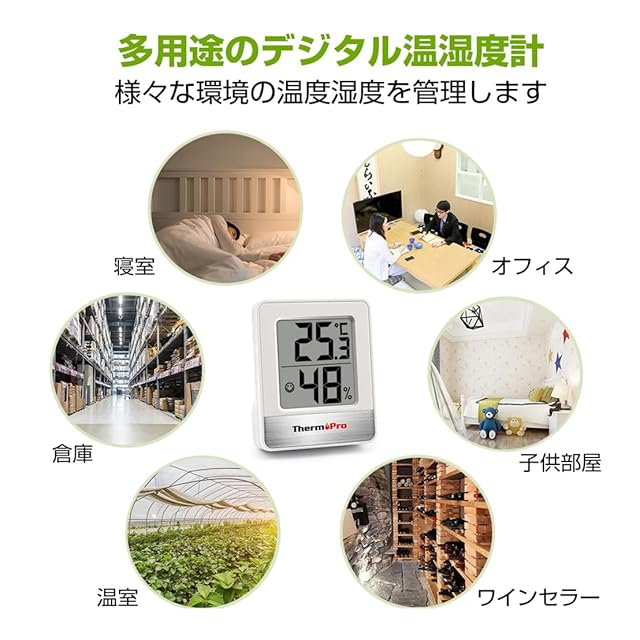 【温度・湿度表示】デカ文字で温度と湿度をとても見やすく表示してくれるデジタル温湿度計。温度計と湿度計が一緒になっているから室内のエアコン管理がしやすく、お年寄り、赤ちゃんやペット(犬、猫、うさぎ、爬虫類など)がいる家庭におすすめです。風邪や乾燥、カビなどの予防目安として活躍します。温室やワインセラー、インキュベーターなどの温度管理にも適用です。