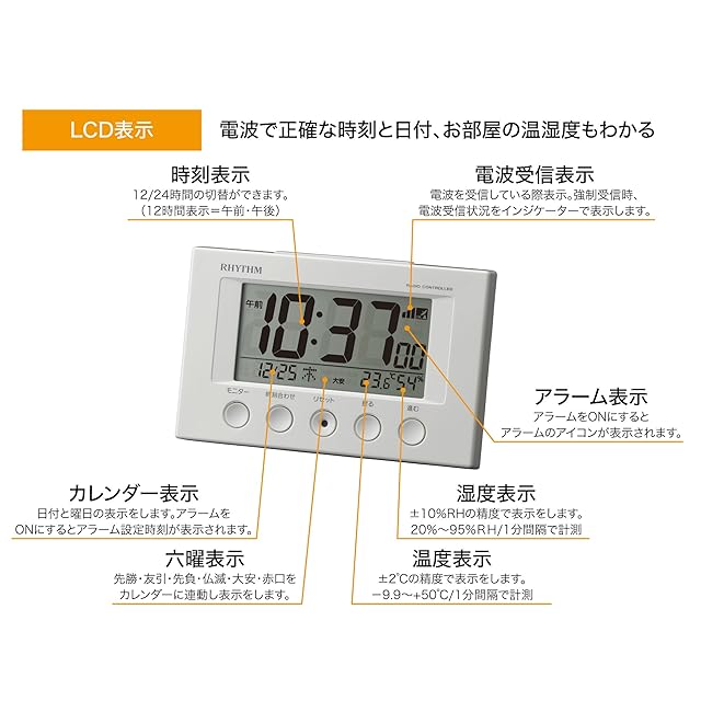 商品名:リズム(RHYTHM) 目覚まし時計 電波時計 温度計・湿度計付き フィットウェーブスマート 白 7.7×12×5.4cm 8RZ166SR03