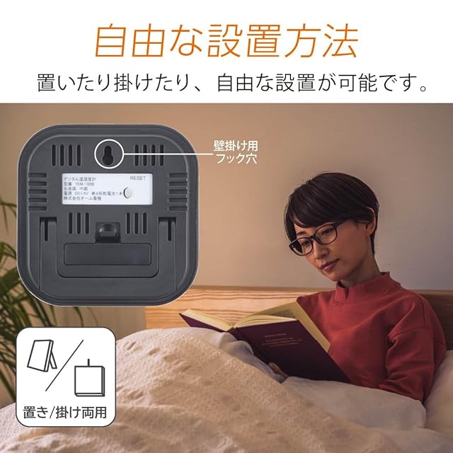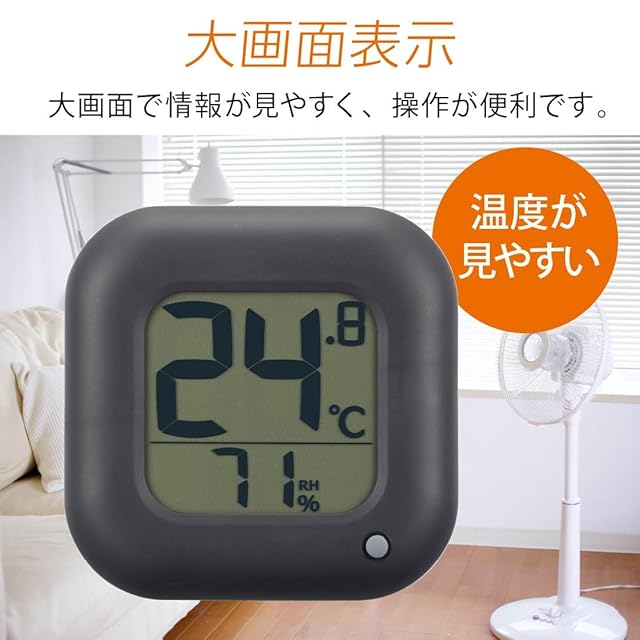 商品名:オーム電機 温度計 大文字 温湿度計 温度が見やすい温湿度計 大画面 置き形 壁掛け シンプル ブラック TEM-100B-K 08-1445 OHM