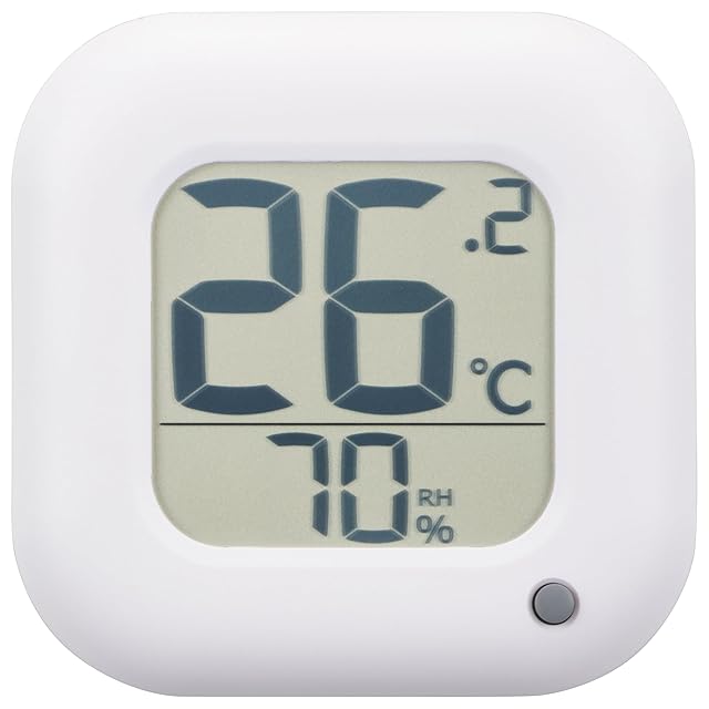 【 仕 様 】 ◆温度表示範囲:-5~40℃ ◆温度測定精度:10~40℃で±2℃ 左記以外で±5℃ ◆湿度表示範囲:20~95% ◆湿度測定精度:40~80%で±8% 左記以外で±10% ◆外形寸法:(約)幅110×高さ110×奥行21mm ◆質量:約93g(電池除く)