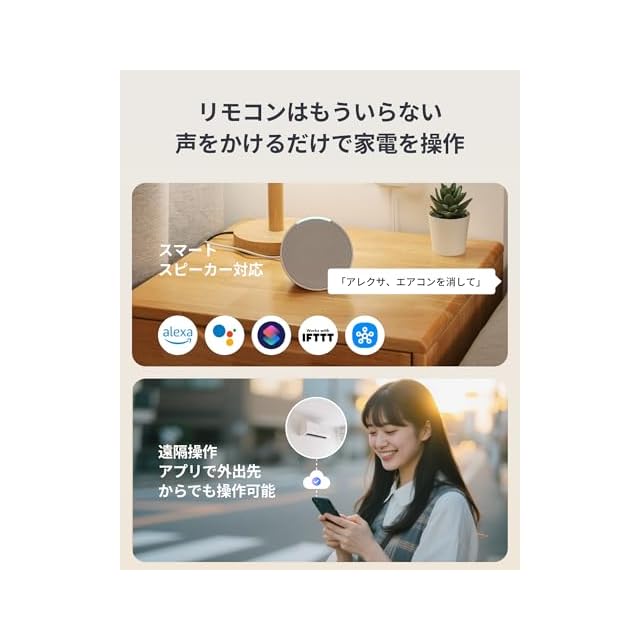 ★【音声コントロール】音声で家電のハンズフリー操作が可能! Amazonアレクサ、Googleアシスタント、Siriショートカットと連携して、声を掛けるだけで家電とSwitchBotデバイスが操作できます。たとえば、「アレクサ、エアコンの温度を25度にして」と一言で、エアコンが自動的に25度に設定されます。