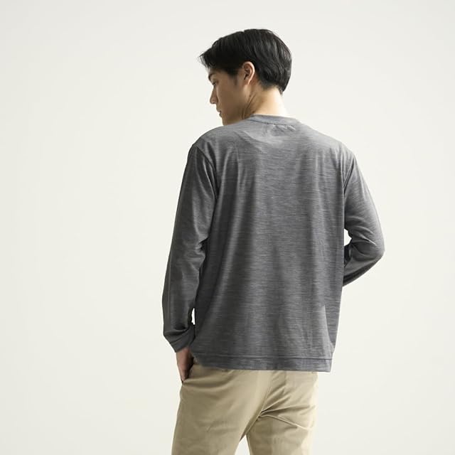 [ミズノ] オールインワン Tシャツ メリノウール クルーネック U首 長袖シャツ 男女兼用 速乾 耐久消臭 調温調湿 チャコール杢 L