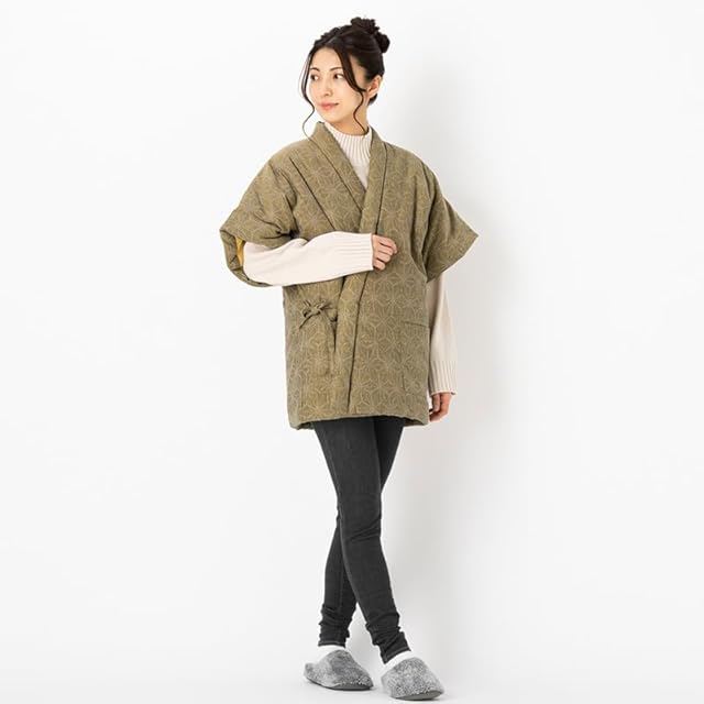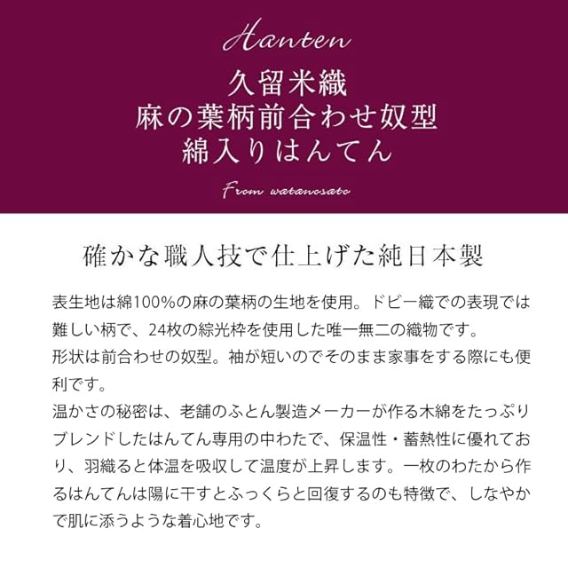商品名:綿の郷(ワタノサト) 日本製 はんてん 女性用 久留米ドビー織 綿入りはんてん 16100 (フリーサイズ, 麻の葉 黄)