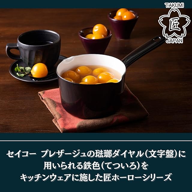 商品名:タクミジャパン(TakumiJAPAN) ミルクパン 12cm 鉄黒 ホーロー ガス対応 食洗機対応 0.8L 湯沸かし 小さい 汚れにくい 琺瑯 ブラック TKM-12M.BK