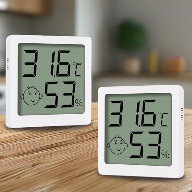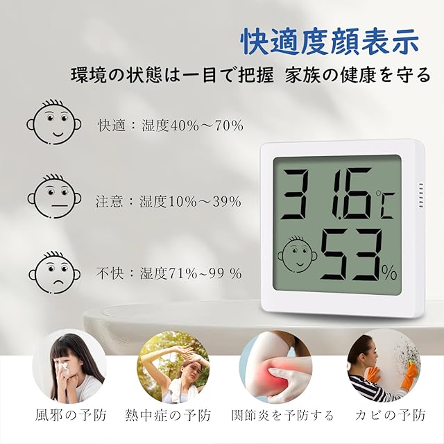 デジタル温湿度計 LCD大画面 省電力 高精度 背面ステッカー付き 湿度計 温度計 コンパクト シンプル 手のひらサイズ 快適度顔表示付 華氏変換 室内用 卓上スタンド マグネット 壁掛け式 高齢者・子供部屋・家庭対応 熱中症対策