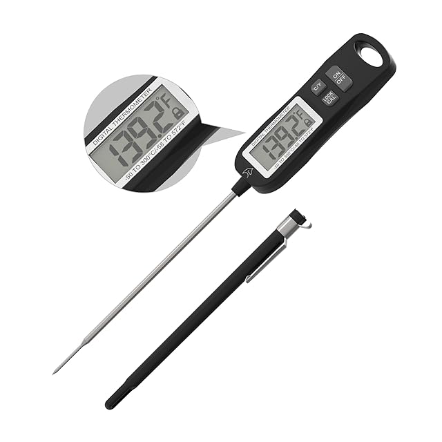 エペイオス(Epeios) 温度計 料理 クッキング温度計 料理用 調理用 -50℃~300℃ 14.1cmのプローブ ホールド機能付き デジタル 水温計 お肉 バーベキュー 揚げ物 お茶 天ぷら コーヒー 油 チョコレート お菓子 パン作りなどの温度管理 お手洗い簡単 収納便利TM002 ブラック