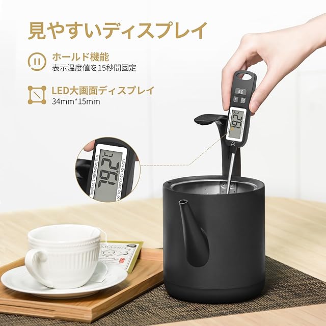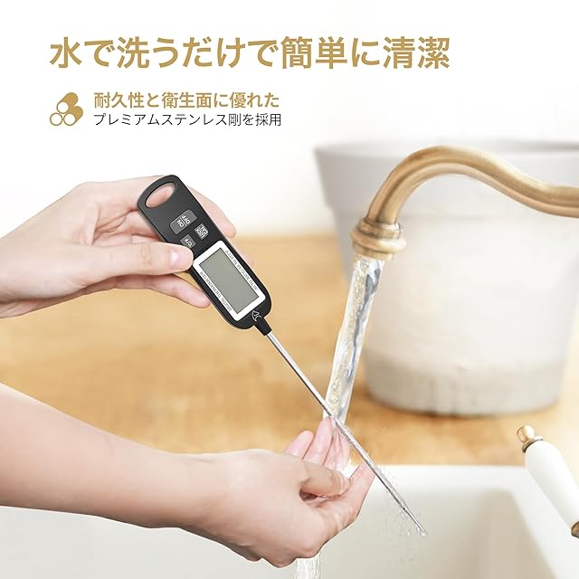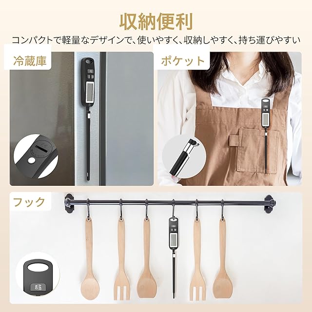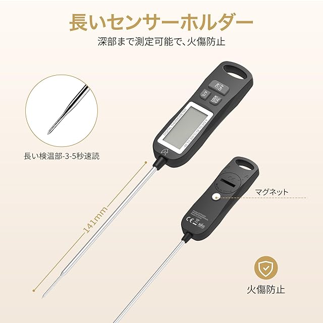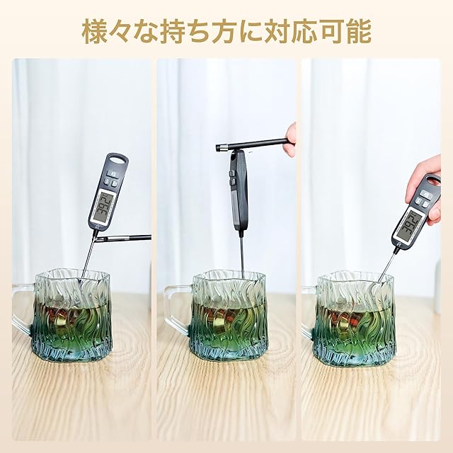 【ステンレス製&様々な持ち方&自動電源オフ機能】ステンレス製の検温部を油や揚げ物なとの料理や、お菓子作りお肉やパンはもちろんローストビーフなど低温調理の温度管理に最適です。様々な持ち方があってアクアリウムや熱帯魚などにしても重宝です。10分自動電源オフ機能が付きて省エネ設計です。