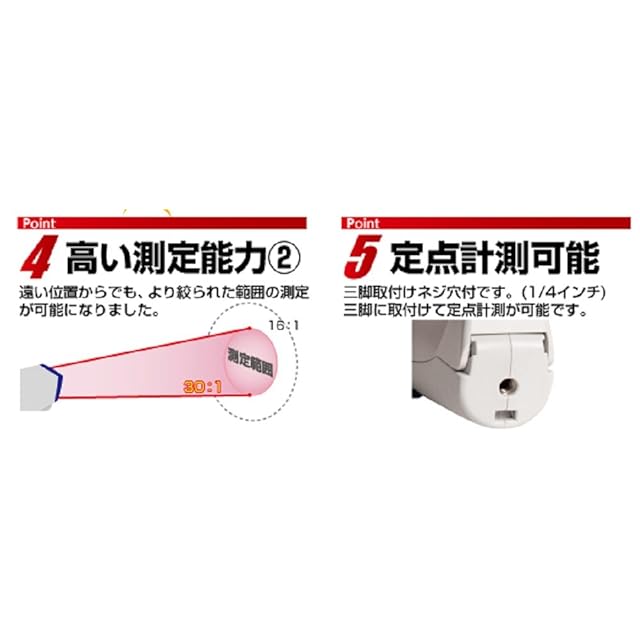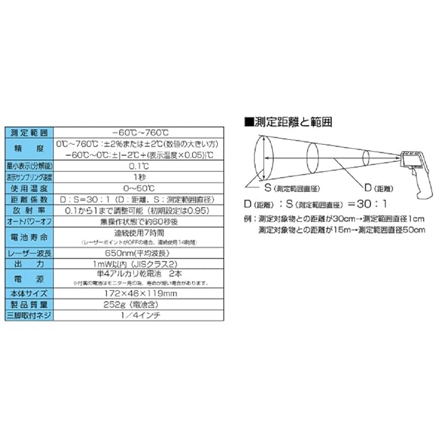 距離係数:D:S=30:1(D/距離、S/測定範囲直径)