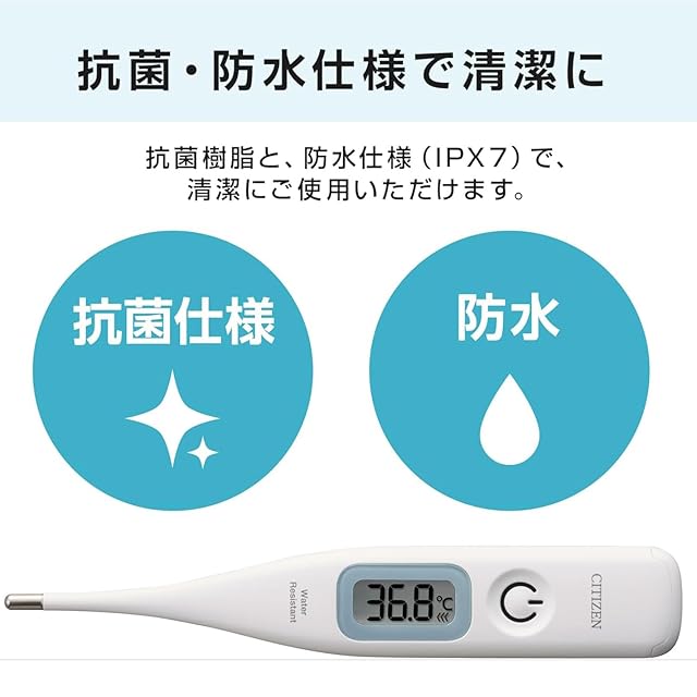 商品名:CITIZEN(シチズン) 電子 体温計 CTEB532 バックライト付き 予測式 スピード検温 30秒 予測 ケース付き SIAA抗菌 加工 洗える抗菌素材でいつも清潔 暗い部屋でも見える バックライト 防水 腋下体温計