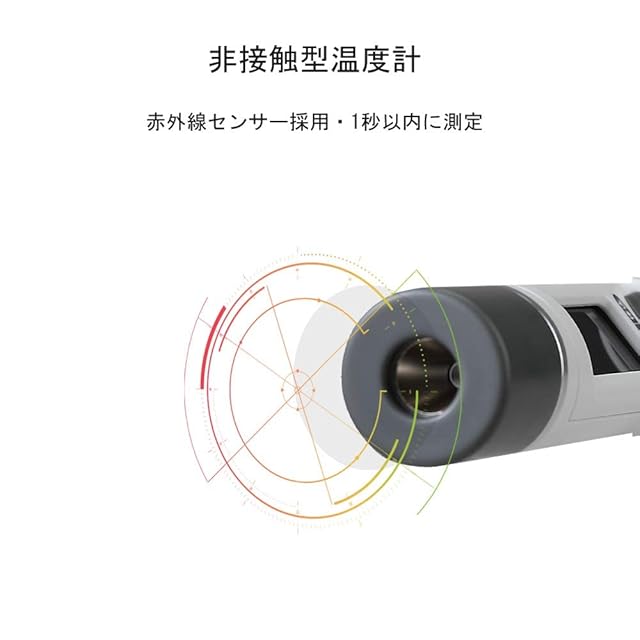 〖非接触温度計〗赤外線センサーを搭載し、非接触でわずか1秒で温度を測定できます