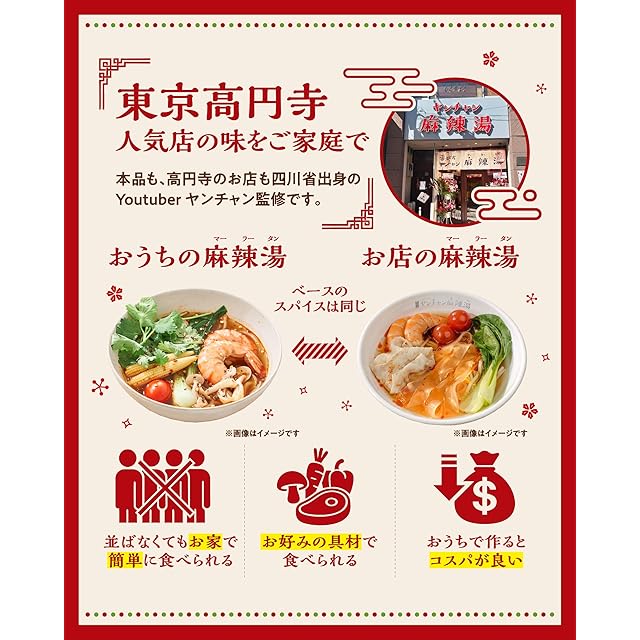 麻辣湯の素 火鍋 の素 楊家式 ヤンチャン 麻辣湯 70g(約1人前×10回分) 旨辛 激辛 四川省出身YouTuberヤンチャン監修 簡単お家で麻辣湯!(保存に便利なチャック付袋入り!)|楊小渓 金の太陽花椒 シビ辛 麻辣 マーラー スパイス