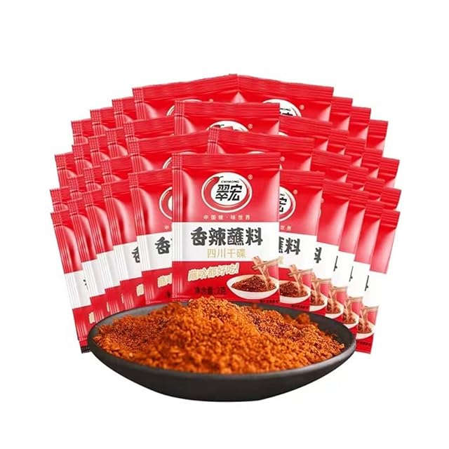 チリパウダー 翠宏香辣蘸料 風味豊か、スパイシー、塩味 粒子が細かい 適度な塩味 四川辣椒面 唐辛子粉 カイエンペッパー 調味料 赤唐辛子の粉 辣椒粉 乾碟 蘸料 干料 干碟香料 香辣占料 烧烤蘸料 火锅蘸料 固態つけ調味料 中華料理 四川料理 バーベキュー 炒め料理(3g*100袋)