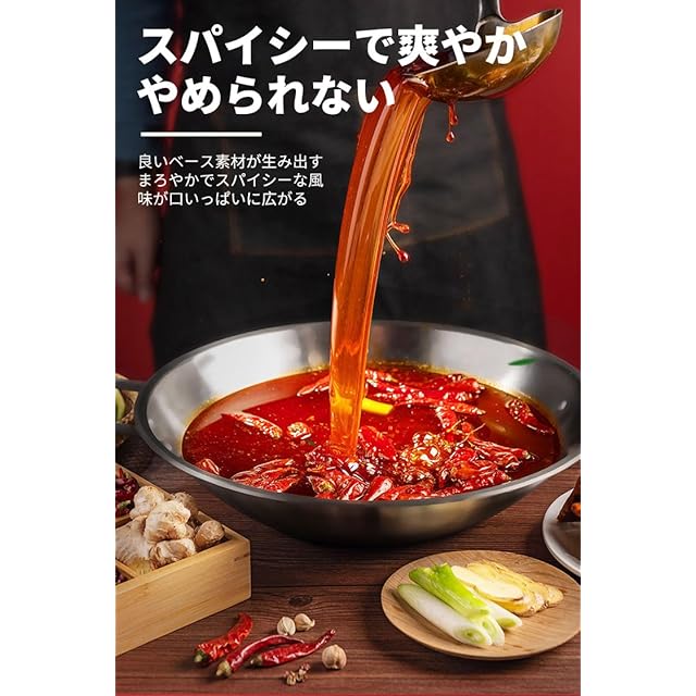 【厳選された原材料】一口食べれば、本場四川の味が楽しめるように、高品質のバターと様々な天然スパイスを厳選しています。ベースと直接取引することで、私たちはソースから厳密に品質を管理し、鍋のベースの各パックが最も新鮮で純粋な状態に保たれるようにしています。この厳格な製造工程は、製品の品質をするだけでなく、伝統的な職人技への敬意と伝統を反映しています。
