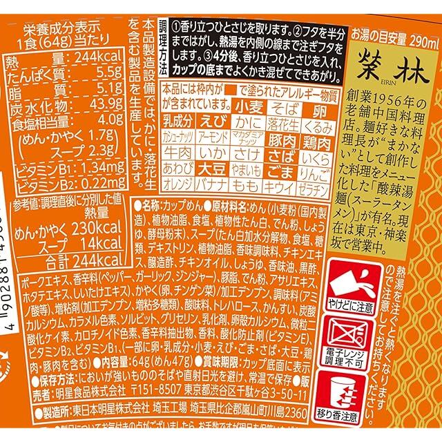 商品名:明星 中華三昧タテ型榮林 酸辣湯麺 64g×12個