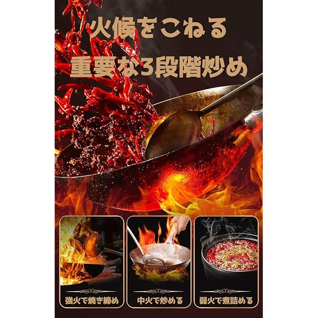 【三段階炒め工法】強火から弱火まで段階的に調整。niu油の香りを最大限に引き出し、複雑な味層を形成する炒り方です。