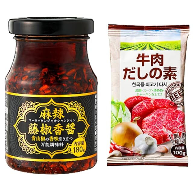 麻辣藤椒香醤(マーラータンジャオシャンジャン)+牛肉だしの素 セット 本格中華調味料 麻婆豆腐・炒飯・ラーメン・鍋に使える 万能香辛料&スープの素 180g+100g