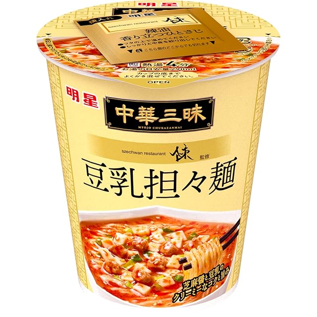 商品名:明星 中華三昧タテ型 スーツァンレストラン陳 豆乳担々麺(四川料理の名店監修、芝麻醤、まろやかな味わい)65g ×12個