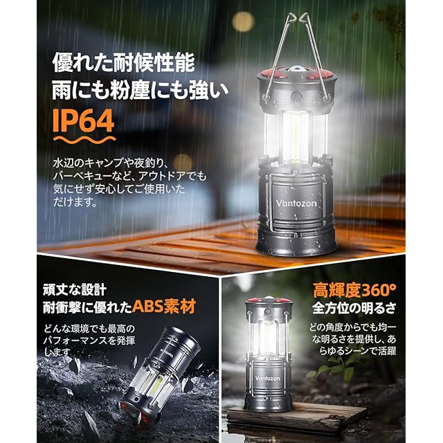 ✅【高い耐久性・IP64防水・耐衝撃】IP64の高い防水性能と耐衝撃性に優れたABS素材を採用しており、雨や湿気、落下に強い構造です。キャンプやアウトドアはもちろん、日常の防災対策としても最適なランタンです。