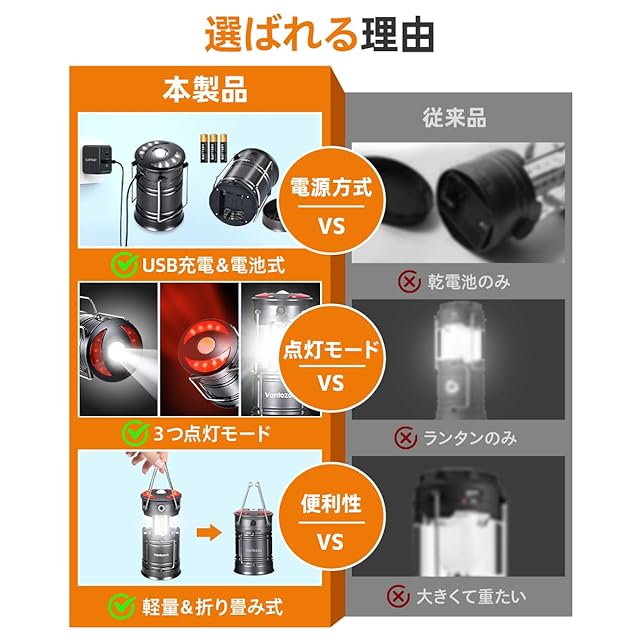 商品名:【2024革新モデル・1台多役】 ランタン led 高輝度 ledランタン 充電式 電池式 防災 キャンプ 軽量 防滴仕様 夜釣り 登山 防災 懐中電灯機能 防災グッズ 停電 緊急 非常用 電池式ラン SSOS点灯モード 折り畳式 持ち運び便利 (ブラック)
