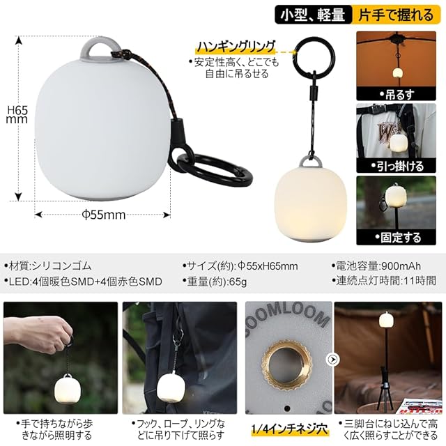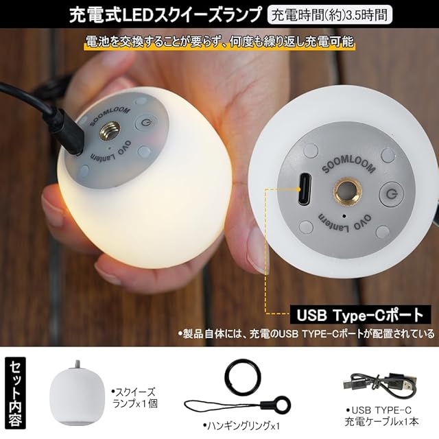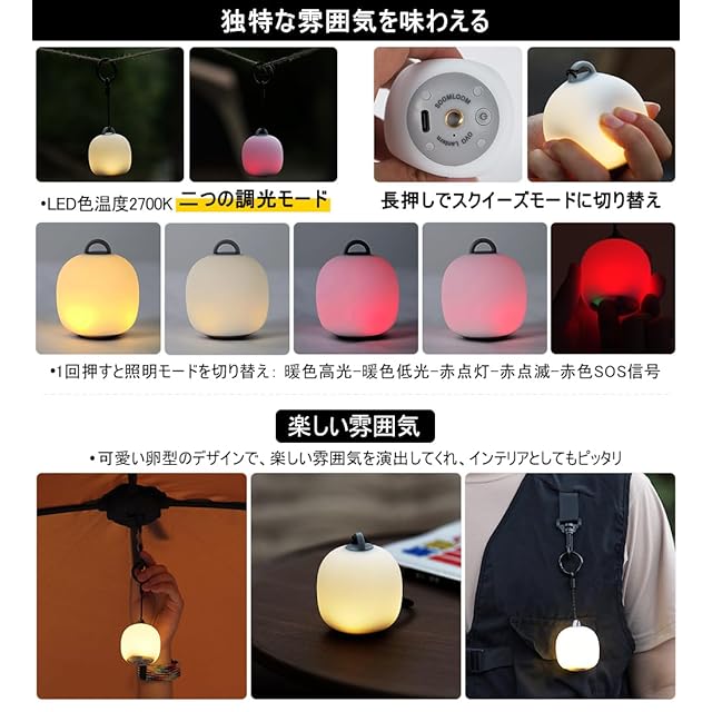商品名:SoomloomスクイーズランプOVOキャンプランタン可愛い雰囲気作り充電式LEDランプ調光可能暖光赤光SOSランプUSBType-C防水1/4ネジ穴長時間点灯キャンプアウトドア照明