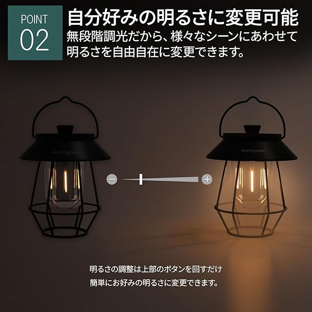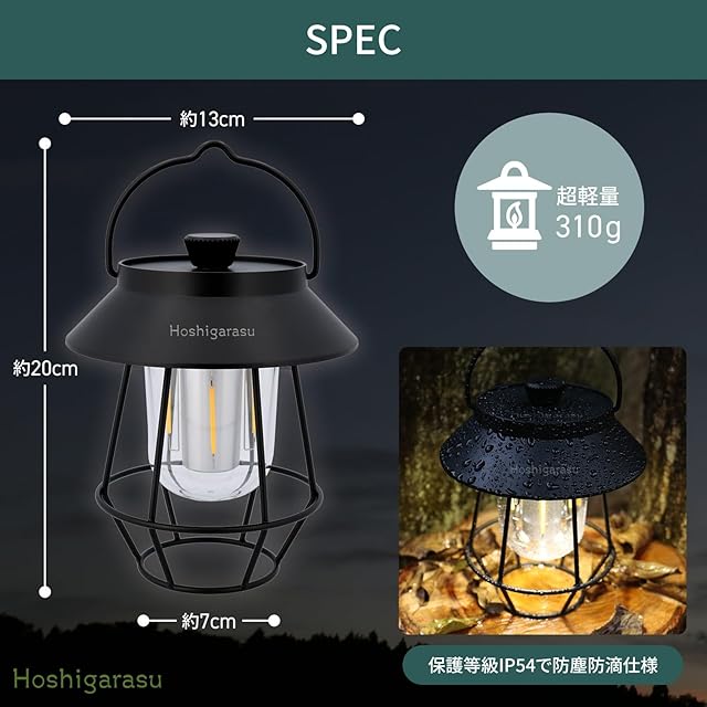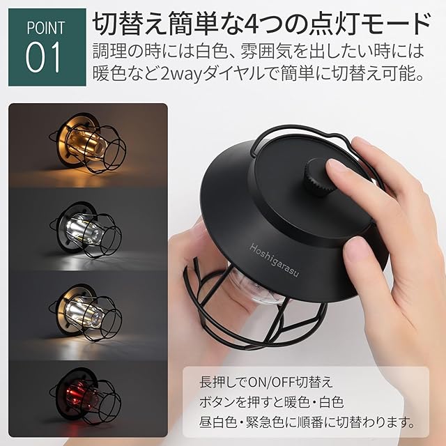 商品名:Hoshigarasu ランタン USB充電式 【吊り下げても明るい】LEDランタン 3色切替 (暖色・白色・昼白色) 無段階調光 緊急赤色点滅 電池残量インジケーター付き モバイルバッテリー機能 5000mAh 120時間点灯 防塵防滴 キャンプランタン アウトドア キャンプ 災害時用 緊急時用 非常用 防災備蓄 車載 作業灯 オリジナルロゴステッカー付き