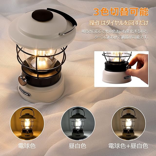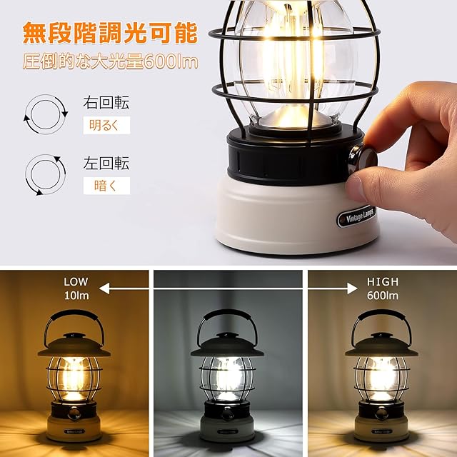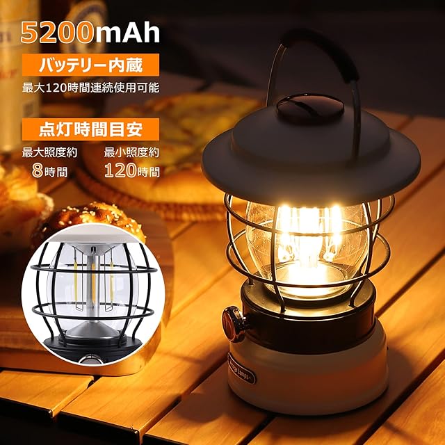 Litake LED ランタン 充電式 レトロ ledランタン 無段階調光 3色切り替え 5200mAh 600lm 120時間点灯 キャンプライト 防災 キャンプ アウトドア ベージュ