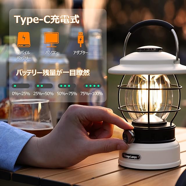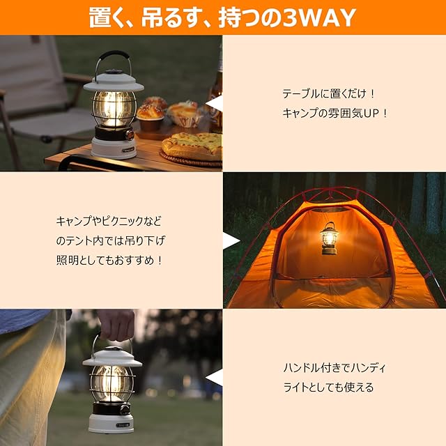 商品名:Litake LED ランタン 充電式 レトロ ledランタン 無段階調光 3色切り替え 5200mAh 600lm 120時間点灯 キャンプライト 防災 キャンプ アウトドア ベージュ