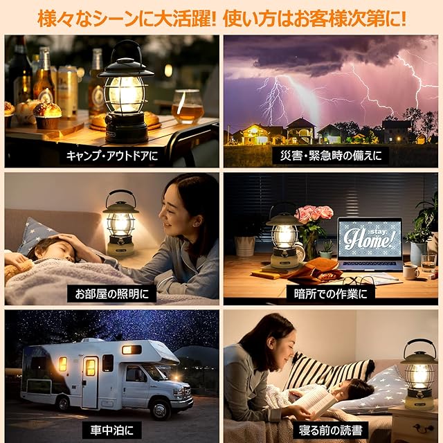 【様々なシーンに大活躍】使い方はお客様次第に!ランタンとしてテント内の照明、キャンプ・アウトドアに、災害・緊急時の備えに、お部屋の照明に、暗所での作業に、車中泊に、寝る前の読書などの必需品としてお勧め、どこでも携帯する心強い宝物になっています。