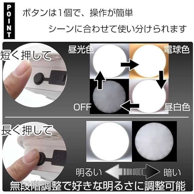 色温度は3タイプもっとも自然な光の色に近いと言われる「昼白色」白っぽく青みがかった色が特徴のもっとも明るい「昼光色」オレンジっぽくあたたかみのある少し明るさを抑えた暖色系の「電球色」好みや用途にあわせて切替ができます。