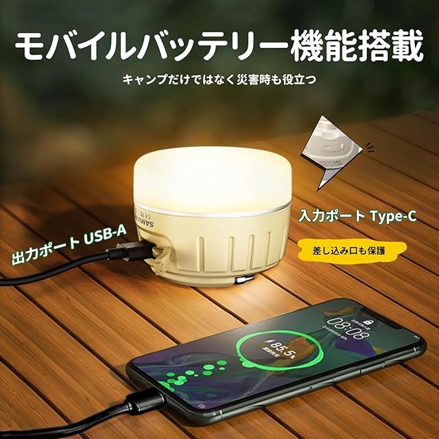 SAMUUN LED ランタン LEDランタン キャンプランタン Type-C充電式 5200mAh USB充電式ランタン 5つ点灯モード モバイルバッテリー機能付き キャンプランタン 光色/輝度記憶