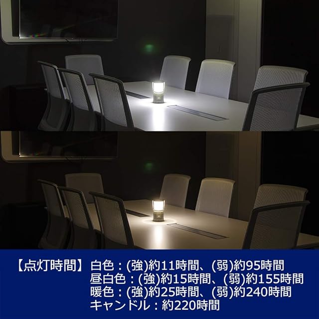 明るさ:白色/1000~120ルーメン、昼白色/850~90ルーメン、暖色/450~50ルーメン