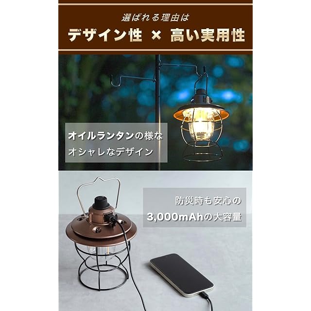 ランタン LED 【実用性×高いデザイン性】 充電式 オシャレ レトロ キャンプ アンティーク風 明るい 広角 防災 防水 キャンプ 釣り 非常用 停電 神奈川県発ブランド Cercano (セルカノ)